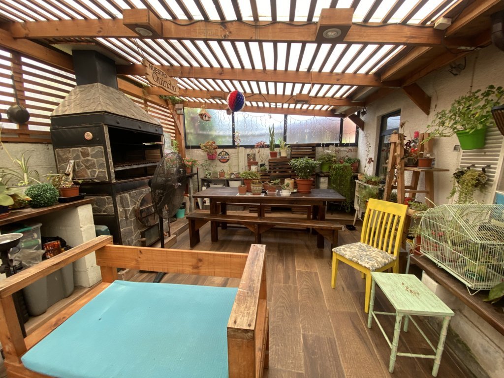 Amplio living comedor, cocina amoblada y equipada con encimera y horno, comedor diario, 4 dormitorios, 2 baños, sala de estar, terraza, quincho con modular con horno, parrilla y campana cónica.