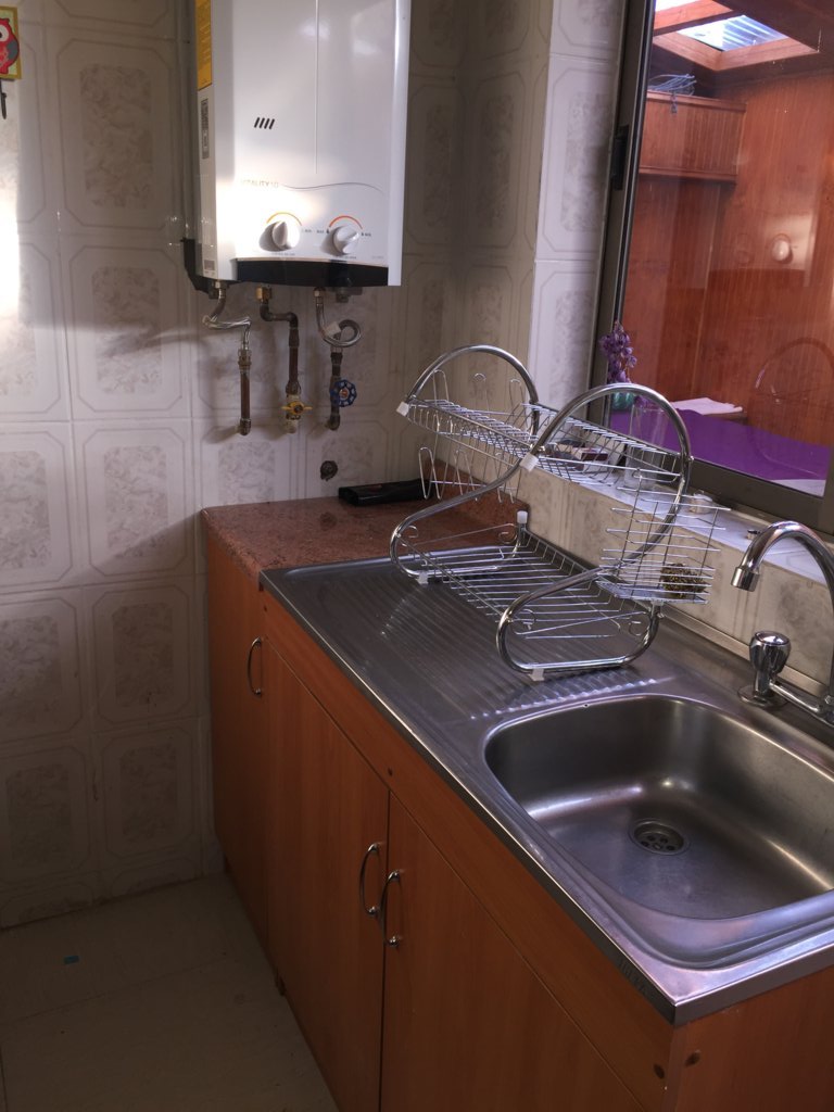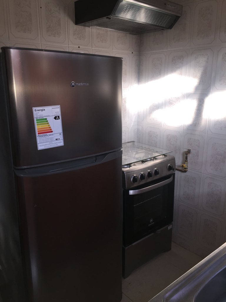 Living comedor, cocina equipada independiente, 3 dormitorios, 2 baños, estufa gas.
