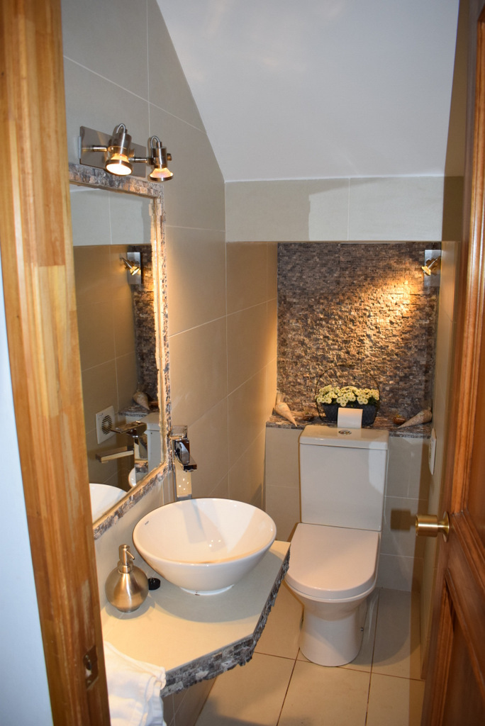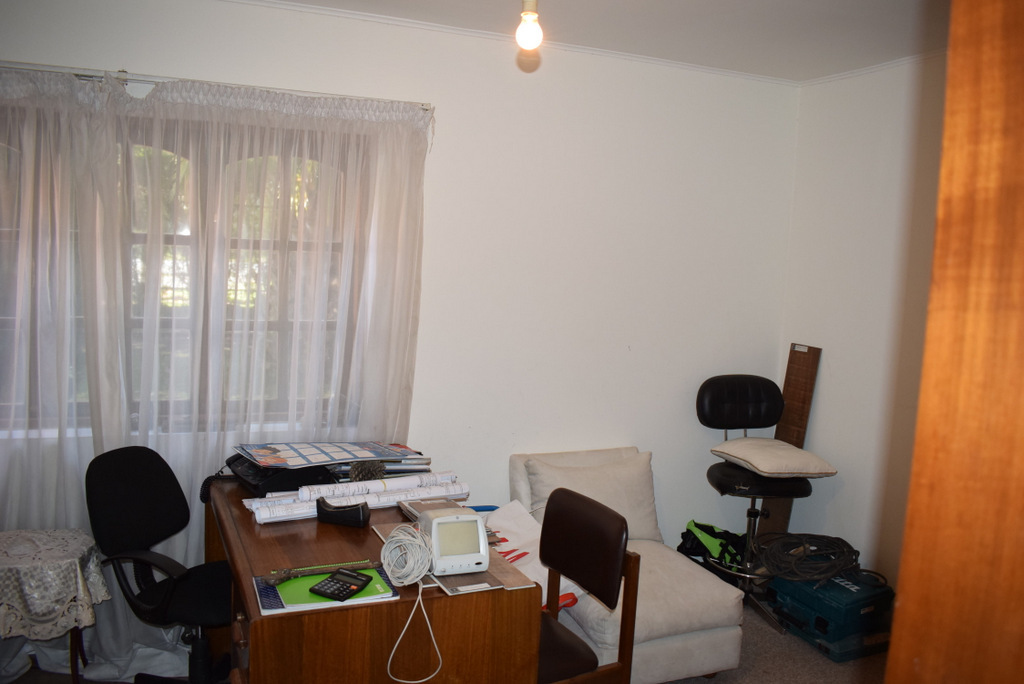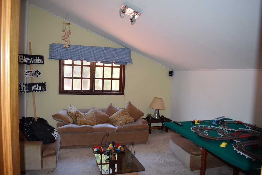 Segundo piso: escritorio, dos dormitorios, baño, sala estar.