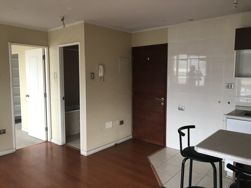 Living con cocina americana, equipada con campana, cocina con horno, conexión lavadora, balcón, dormitorio con walk in closet y baño.