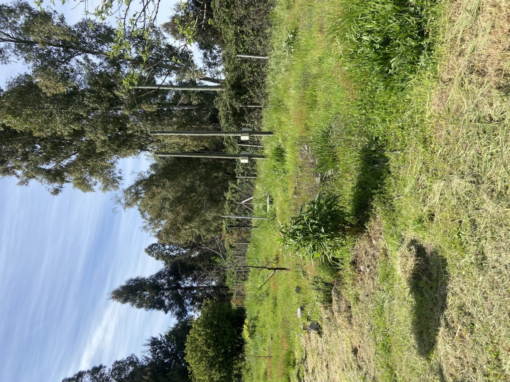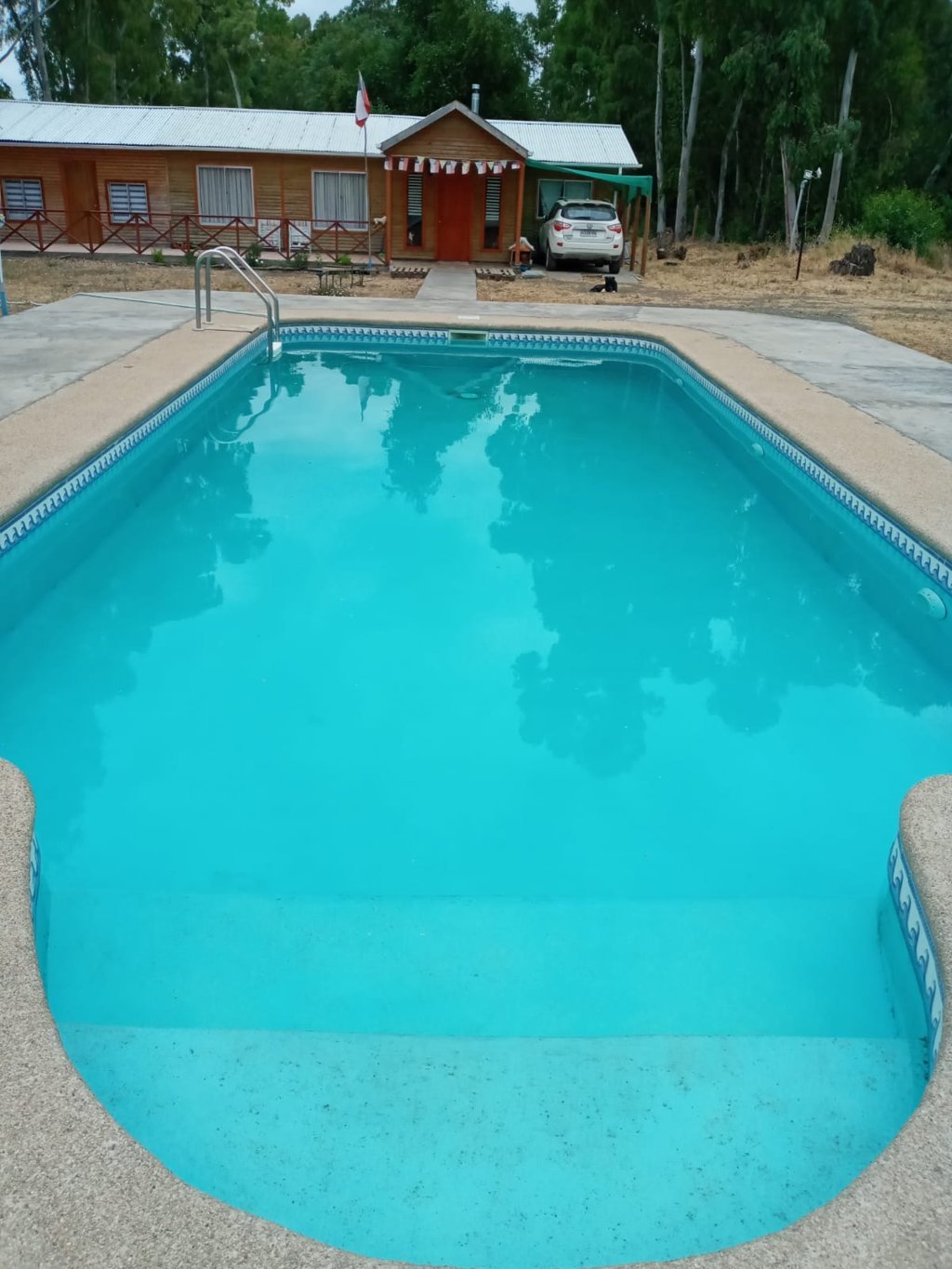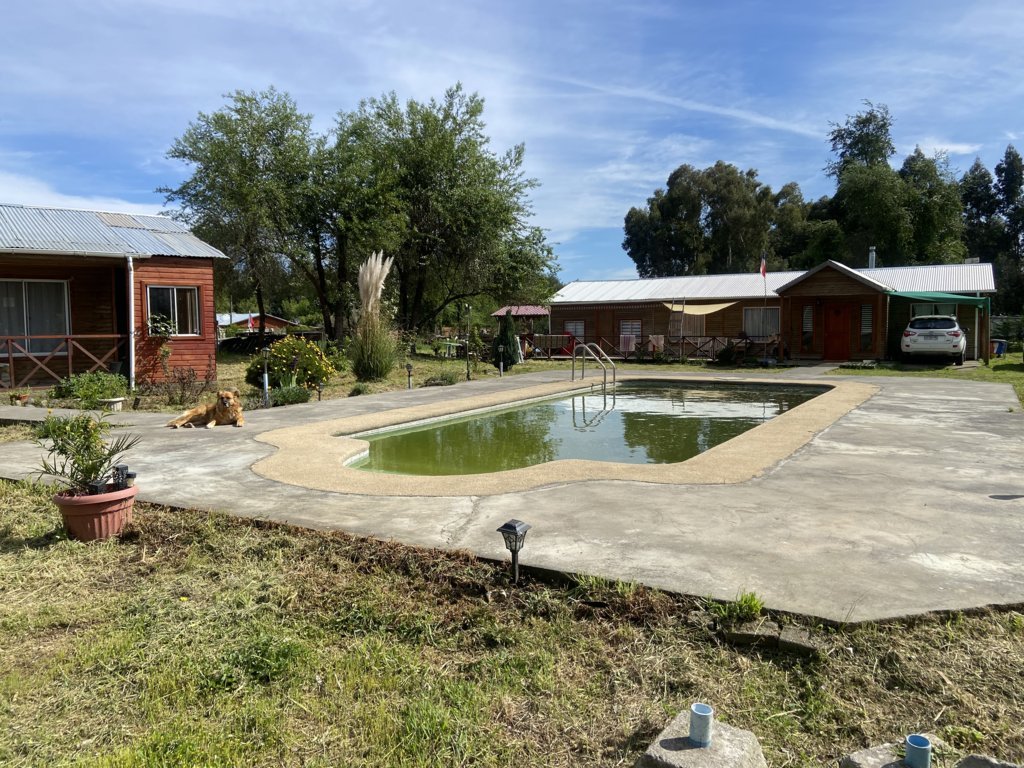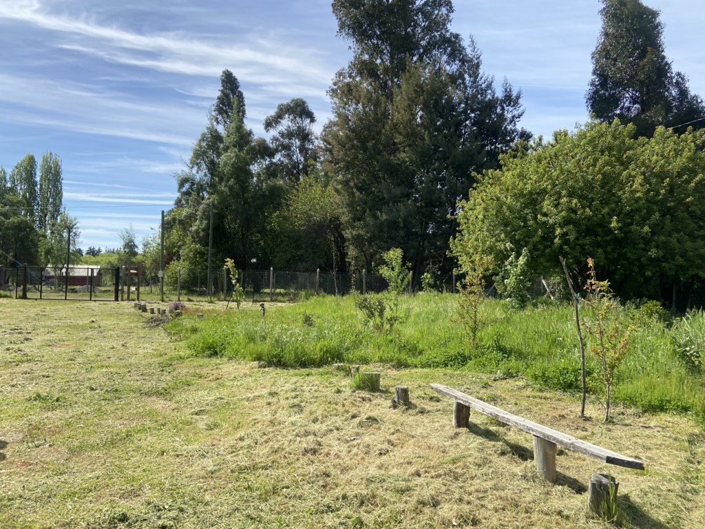 Terreno plano con piscina, cierre perimetral, árboles frutales, ornamentales y nativos.
