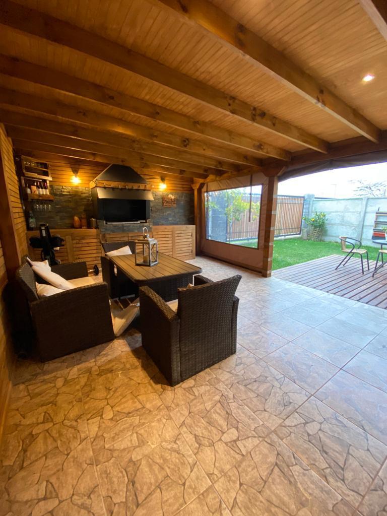 Cortinas, ventanas termo panel, bodega, quincho de 25 mts2, estacionamiento para 3 vehículos.