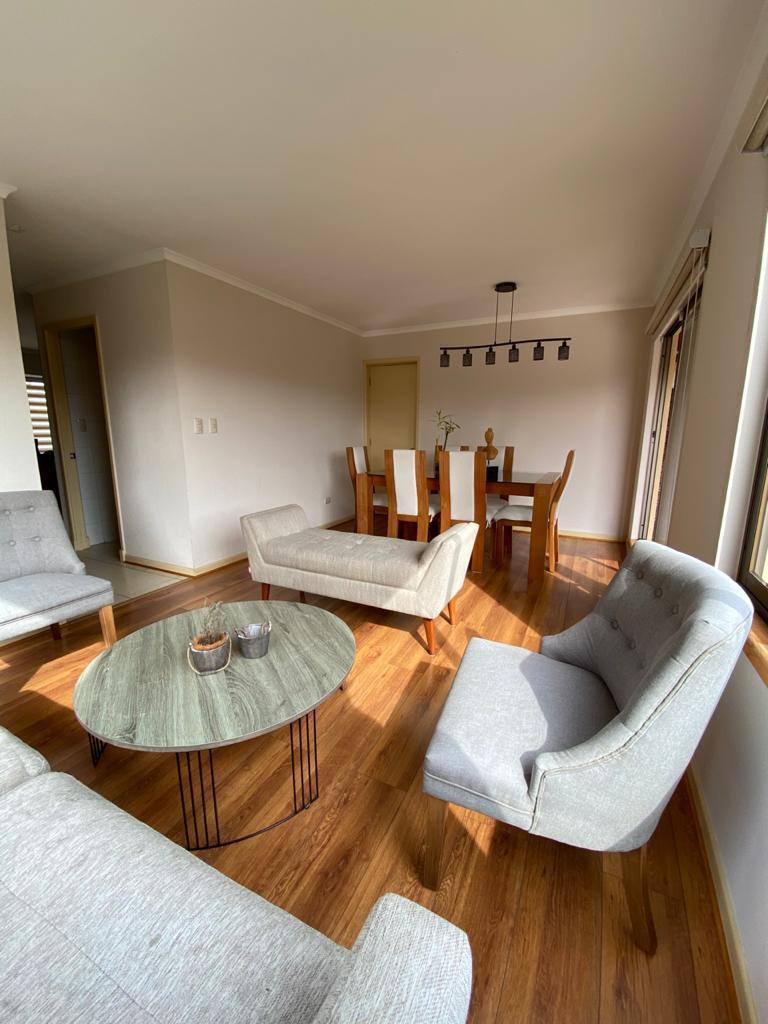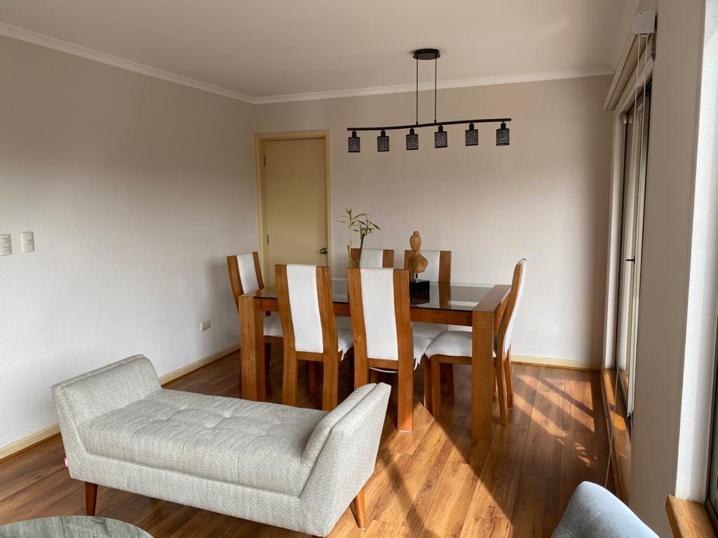 Amplio living y comedor con piso flotante en excelente estado, estufa a pellet, cocina equipada con horno eléctrico, cocina encimera, campana, conexión lavadora y secadora, sala estar.