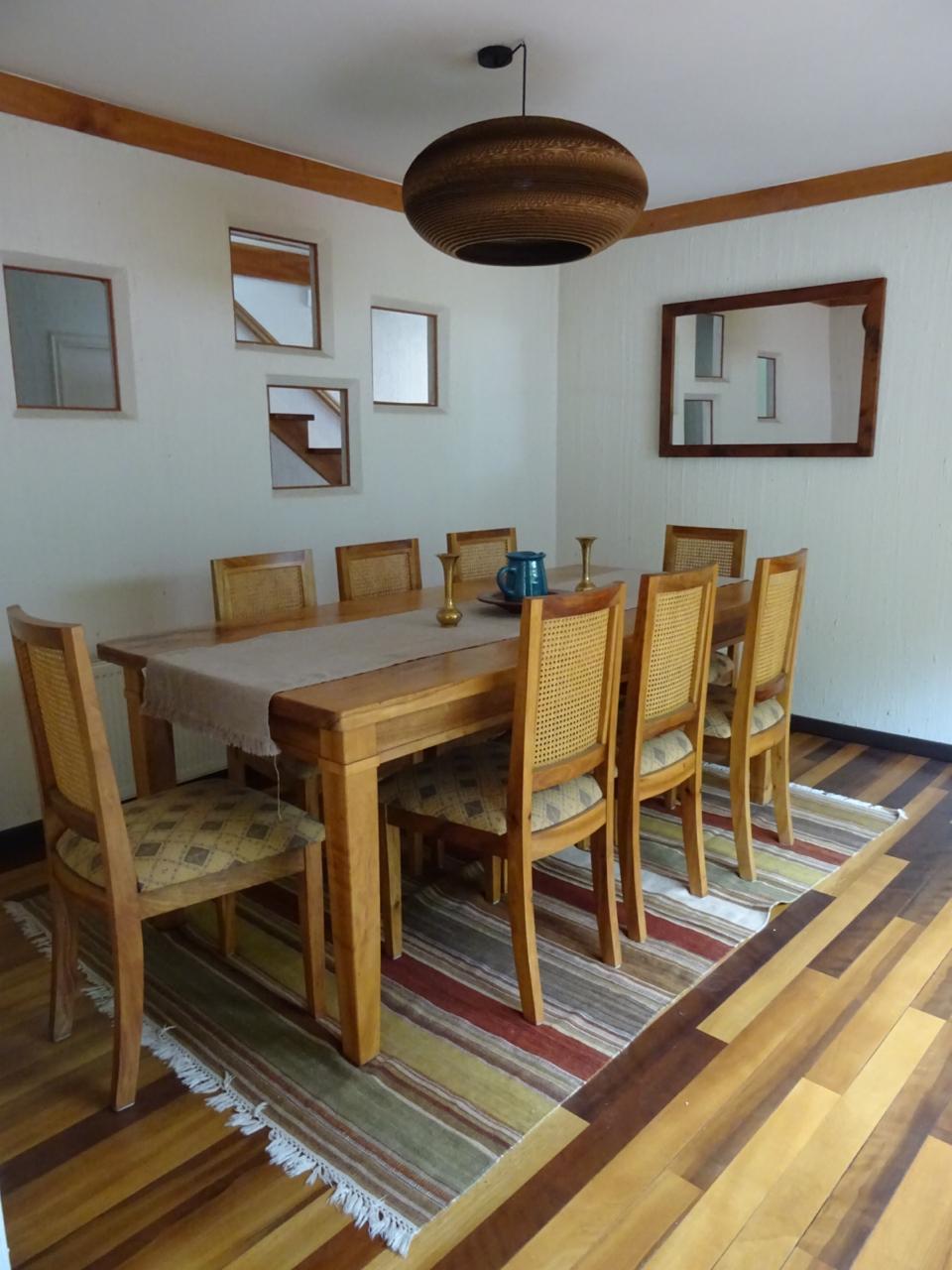 Planta 1: acceso principal con amplio hall de entrada, gran living con chimenea, comedor, baño visitas, cocina con comedor de diario amoblada con madera nativa de Raulí, dormitorio/oficina con closet y baño en suite.