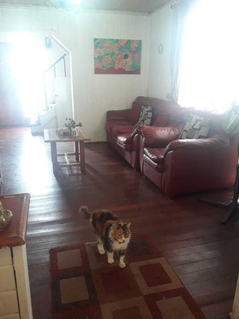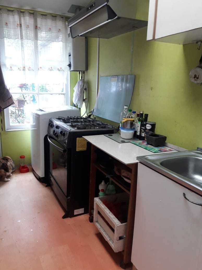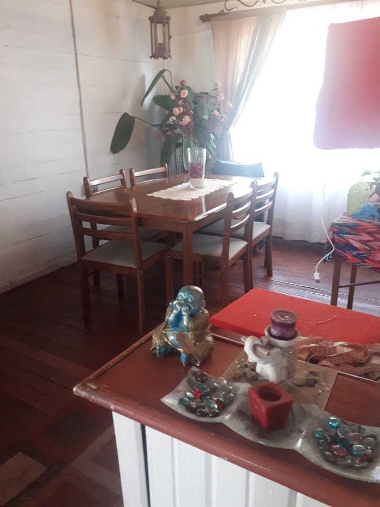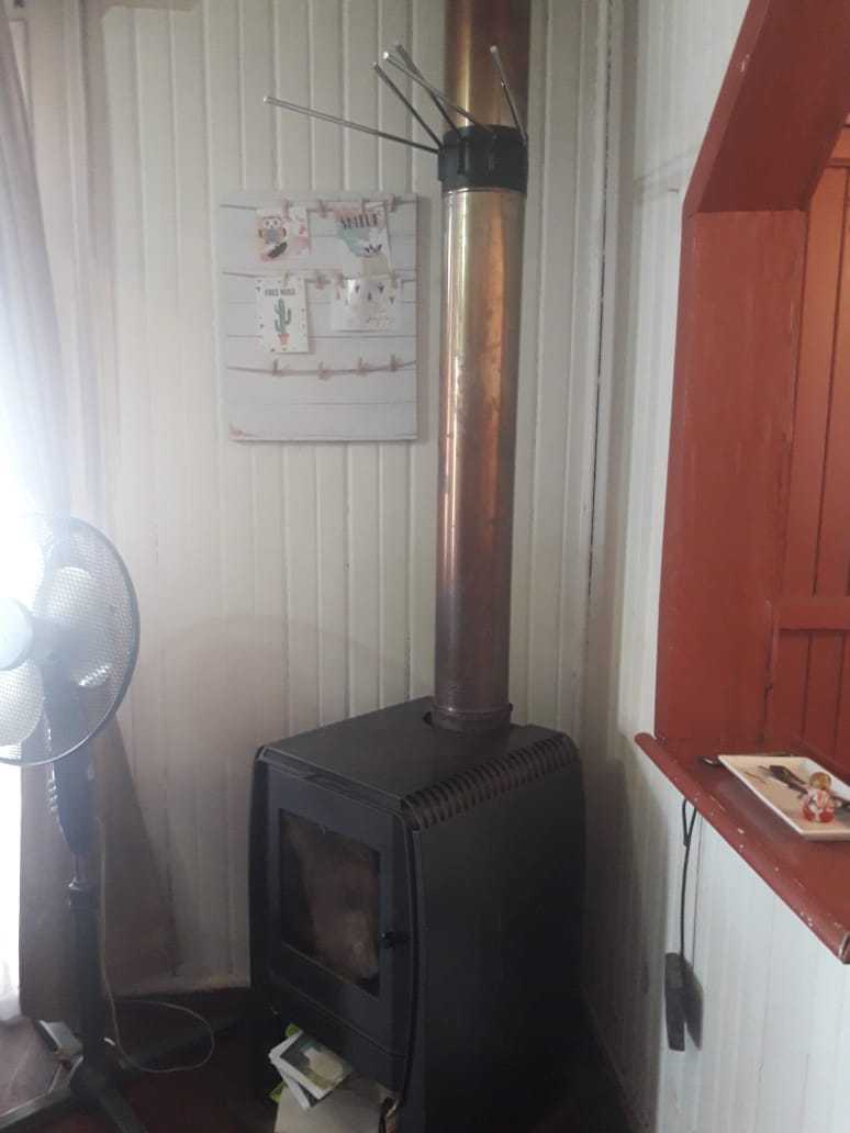 Amplio living comedor con estufa combustión lenta, cocina independiente, 4 dormitorios y baño.