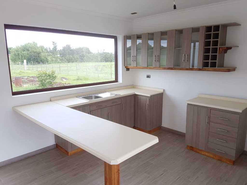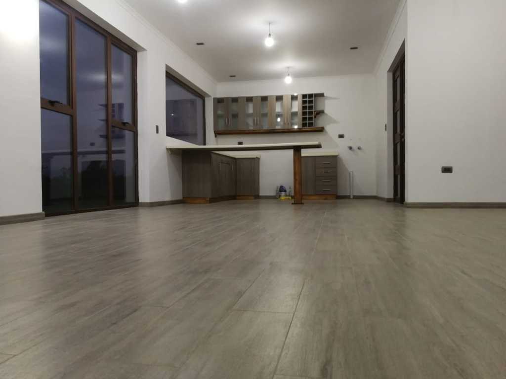 cocina americana equipada, 3 dormitorios, 2 baños, piso porcelanato, ventanas termo panel, termo eléctrico.