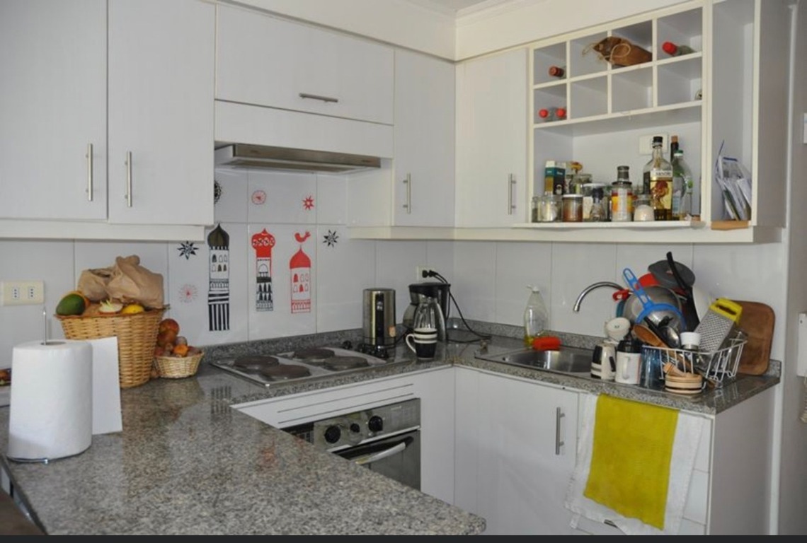 Living con cocina amerciana amoblada y equipada, balcón, dormitorio con walk in closet, baño y bodega.