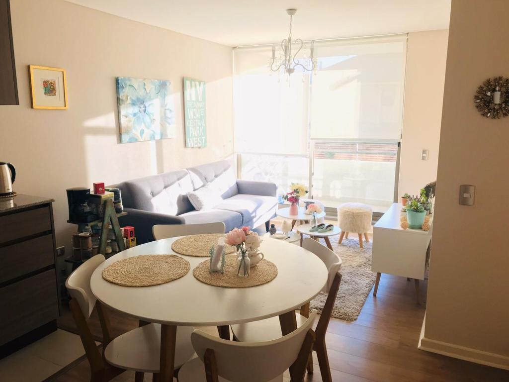 Living comedor con cocina americana amoblada y equipada, balcón, 2 dormitorios, 2 baños.