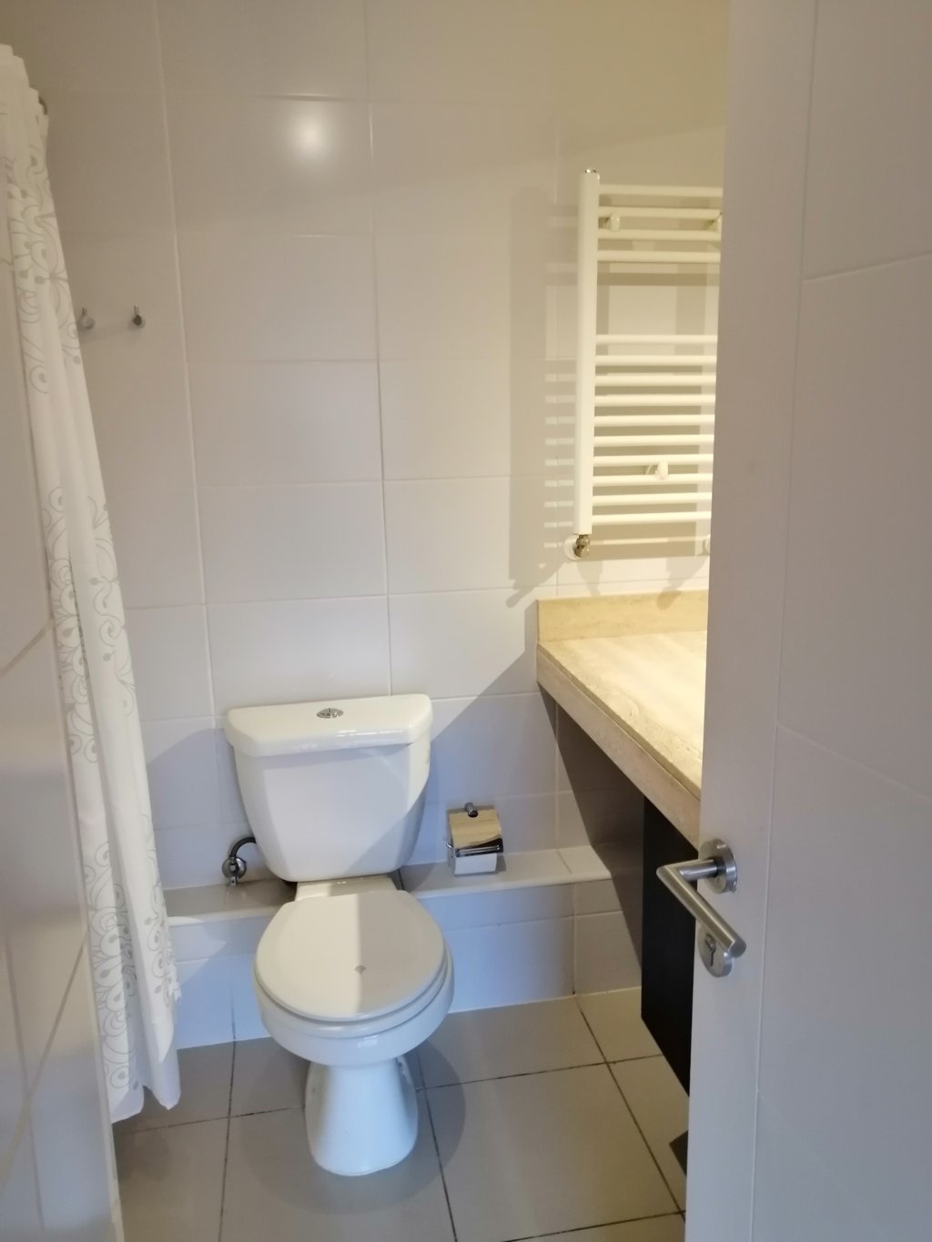Living, cocina americana amoblada y equipada con encimera, horno, campana, 2 dormitorios en suite, 2 baños, lavadora.