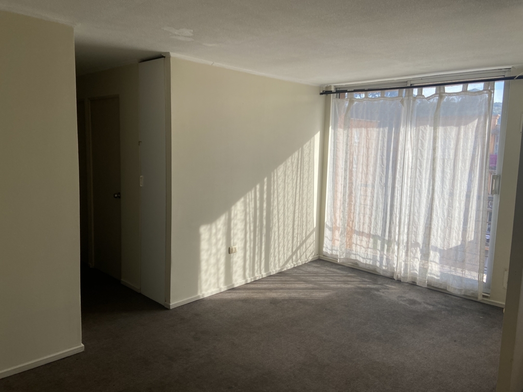 Living con cocina americana, logia, balcón, 3 dormitorios, baño, estacionamiento.