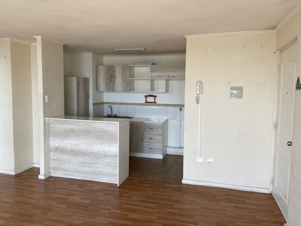 Living comedor con cocina americana amoblada, conexión lavadora, logia, balcón, 2 dormitorios, baño.