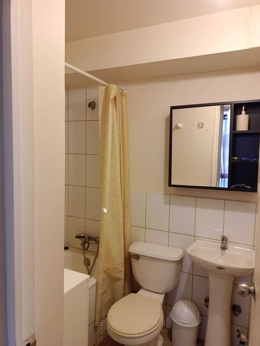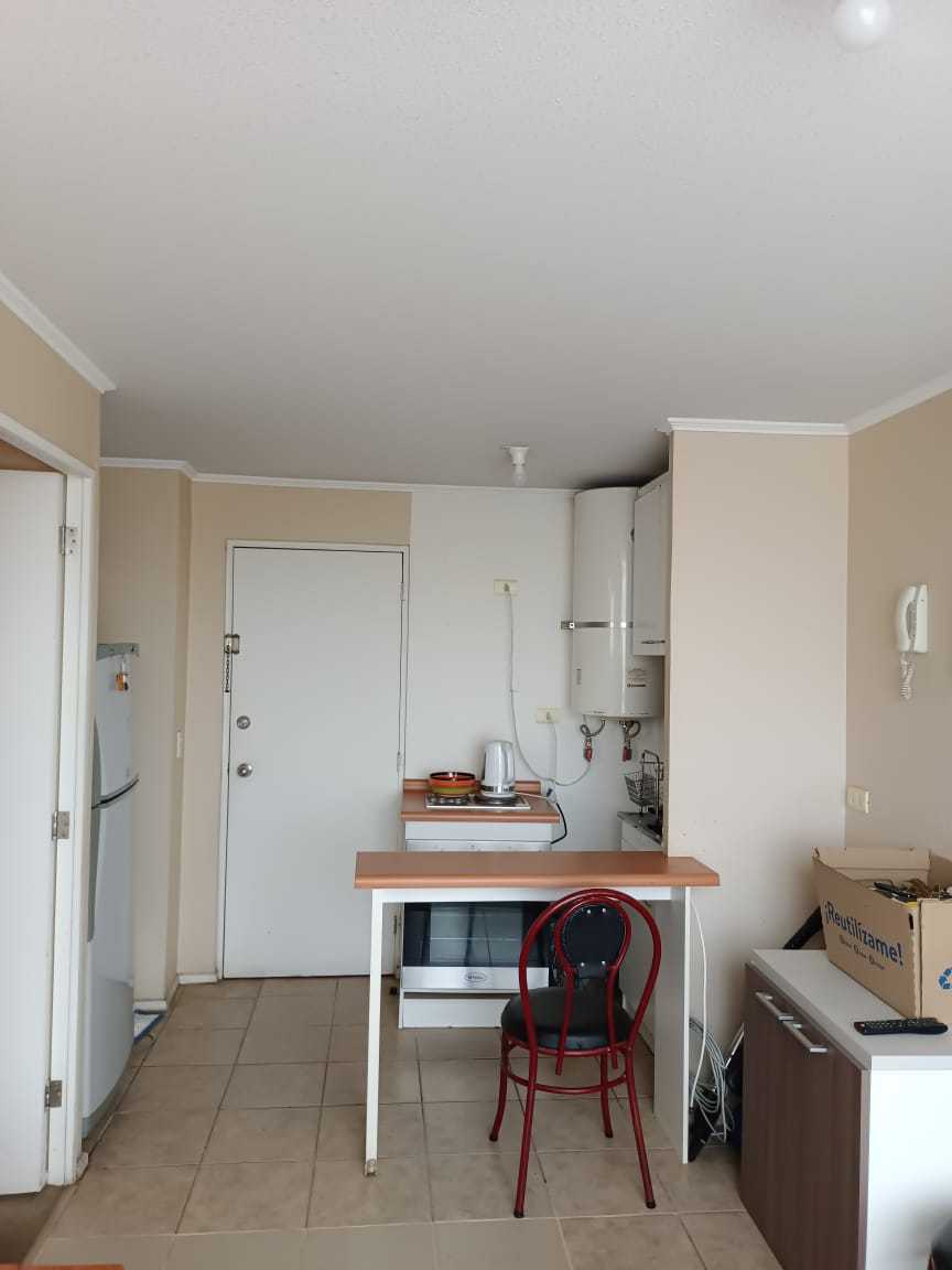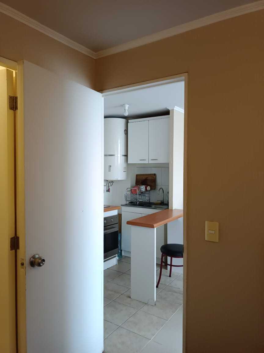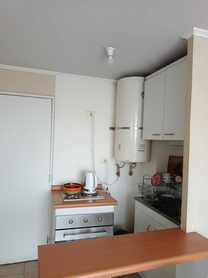 Living con cocina americana amoblada, termo eléctrico, dormitorio y baño.