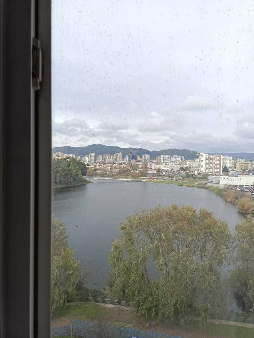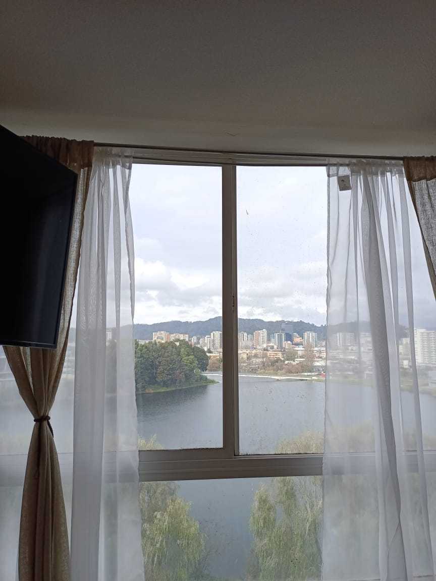 Hermosa vista laguna Tres Pascualas, sol de mañana, movilización a la puerta, cercano a Universidad San Sebastián, locales comerciales, bencineras, supermercados, colegios.