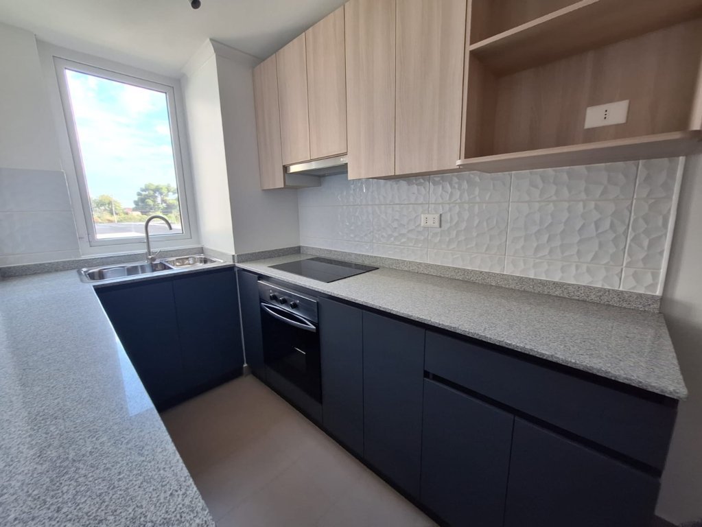 Departamento cuenta con 2 amplios dormitorios, 2 baños (uno en suite), living comedor, cocina independiente equipada (cocina, encimera y horno eléctrico), balcón, estacionamiento y bodega.