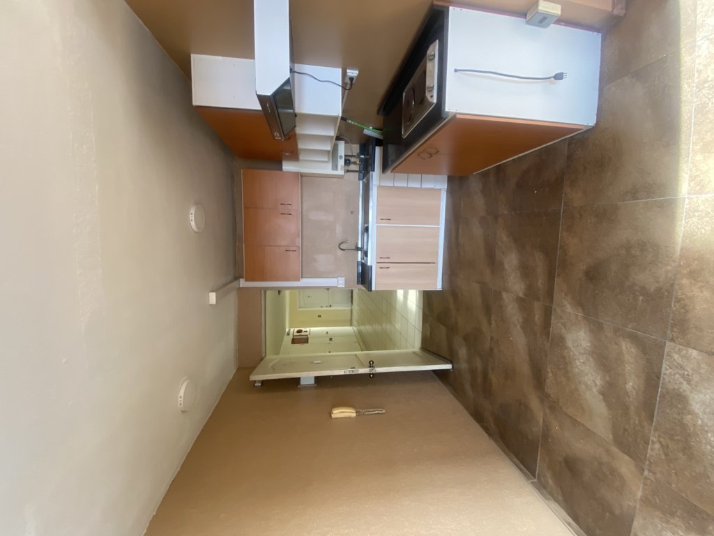 Living con cocina americana amoblada y equipada con encimera y campana, 2 dormitorios, baño con conexión lavadora.