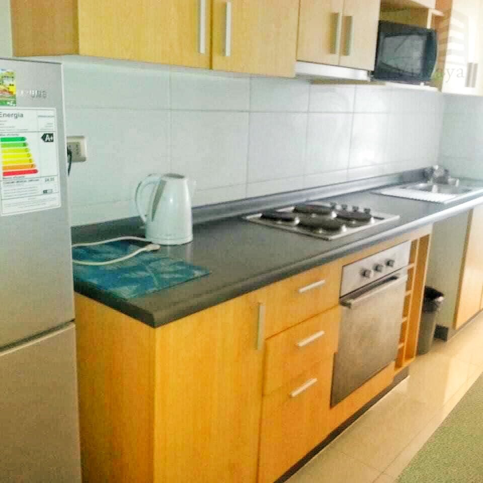Living comedor con cocina americana, equipada con cocina encimera, horno,campana, refrigerador, lavadora, 3 dormitorios con 2 camas y 2 televisores, 2 baños.