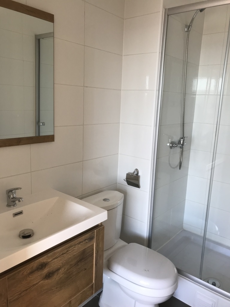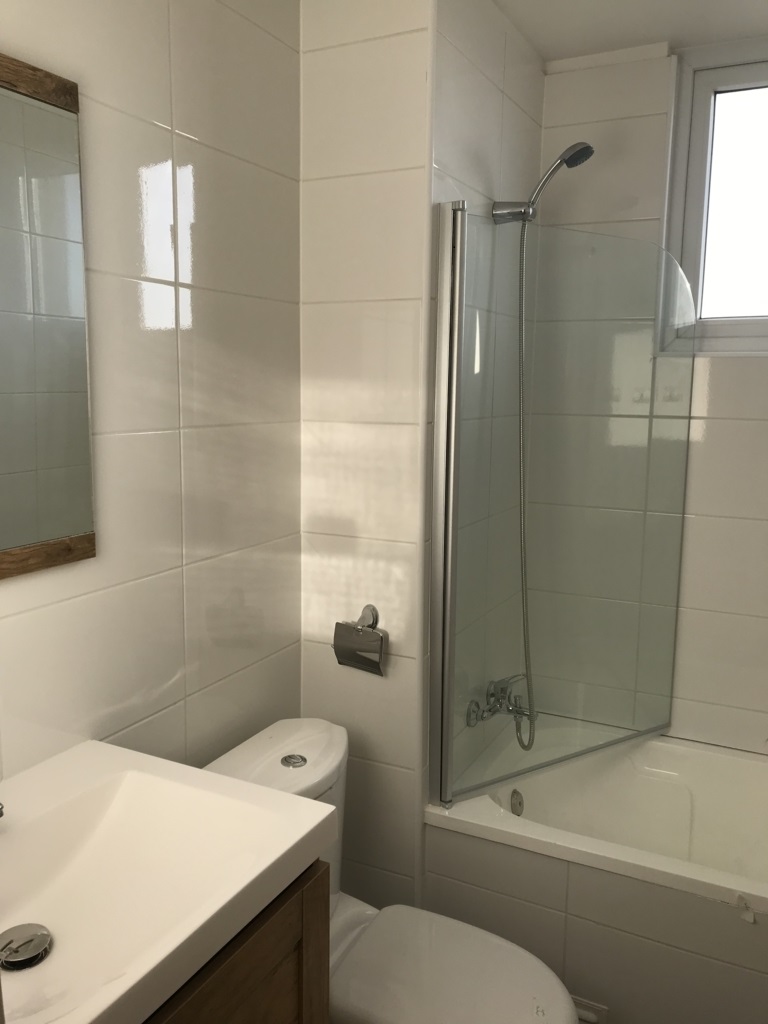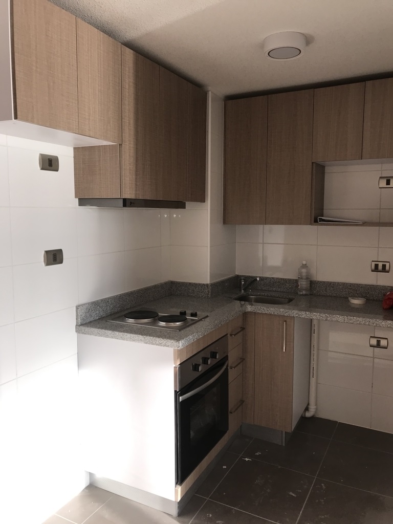 Living comedor, cocina americana equipada con encimera, horno y campana, doble terraza, 2 dormitorios (1 en suite), 2 baños, estacionamiento.