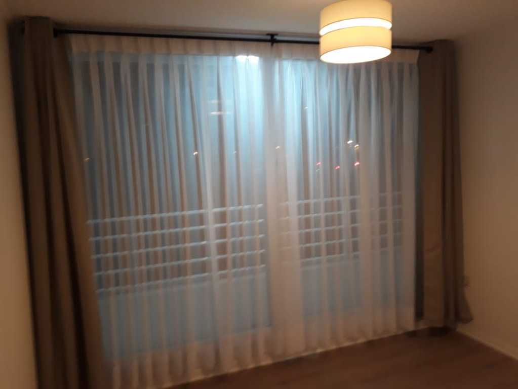 Cortinas y lámparas, ventanas de PVC con termopaneles, piso fotolaminado en living y comedor.