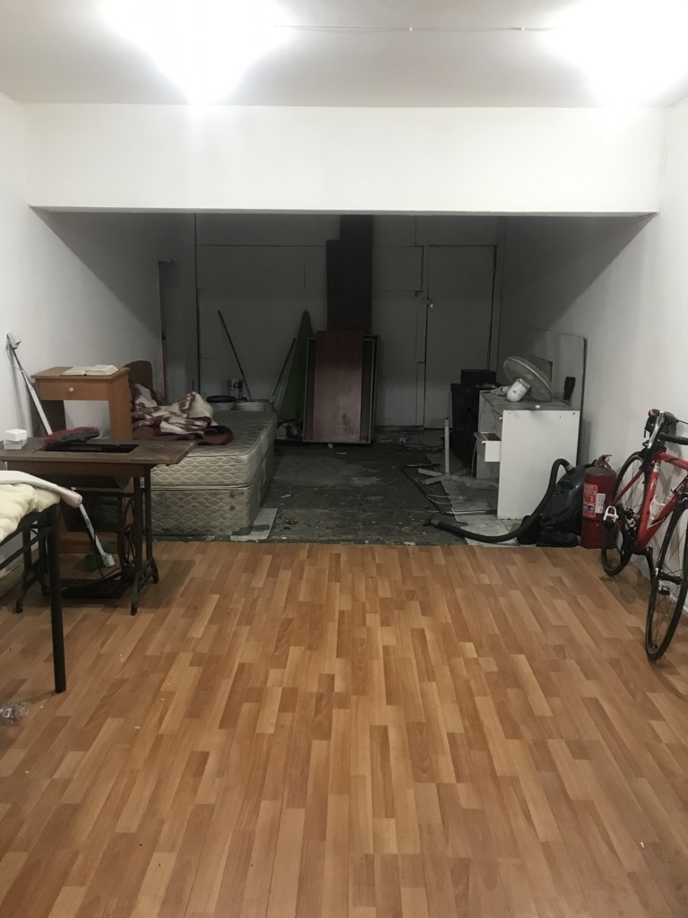 En primer piso 2 vitrinas a la entrada, sala de ventas; y en segundo piso baño y bodega.